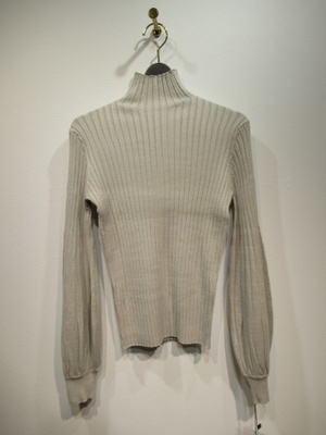 ハイネック 太リブのニット 袖は肘下はボリュームあり 袖口リブ 手洗い可能