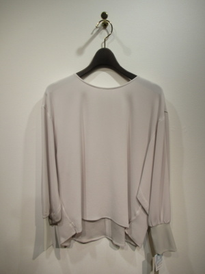 ※春物新作 クルーネックオーバーブラウス とろみのある生地なので落ち感がある 前後差が有り ドロップショルダーなので身幅は広め 袖口は幅広の異素材リブ 裾脇3cmほどのスリットいり 後ろネックラインのところにカギホック(着脱用)手洗い可能( ID:118806のグレージュと黒はセット可能)