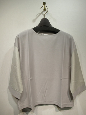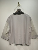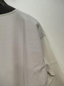 ドロップショルダー 身頃はやや幅広でスクエアシルエット 袖は(カフス以外)ポリエステルコットンの透け感ある素材 袖筒幅広 7分袖 手洗い可能