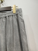 細コーデュロイ生地、裏なしのややAライン気味のタイトスカート、両サイドスリット(約28cm)、ウェスト後ろギャザー、紐調整リボンあり、脇ポケット、手洗い可能