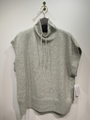 フレンチスリーブのベスト風ニット ボトルネック(飾り紐あり) 裾リブ編み