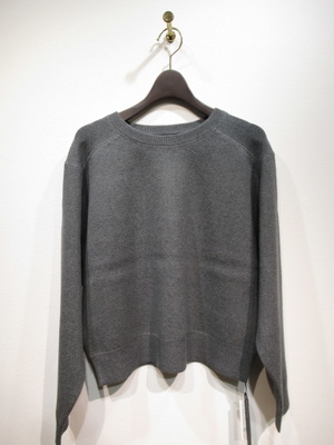 ややしっかりしてトレーナーのようなデザインですが 綿カシミヤのとても肌触りの良い素材です ややドロップショルダーで身幅ひろめです 手洗い可能