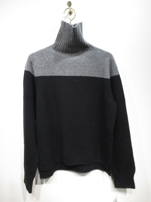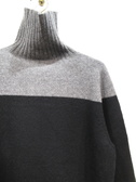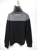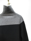 配色ニット(ネイビーはブルー、グレーは黒)、ウール100%の高さのあるハイネック、前後差あり、襟・袖・裾がリブ、手洗い可能、ID:118468と同じ形