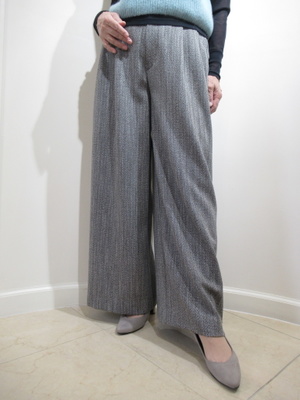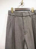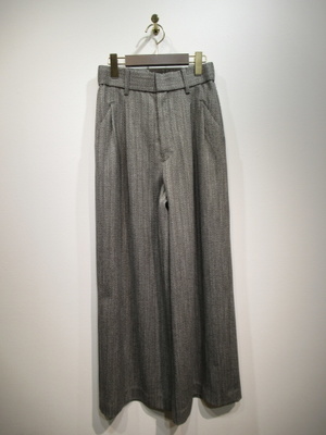 フロントタック入りワイドパンツ ヘリーンボーン柄 裏地なし 前ファスナー ウエスト後ろゴム