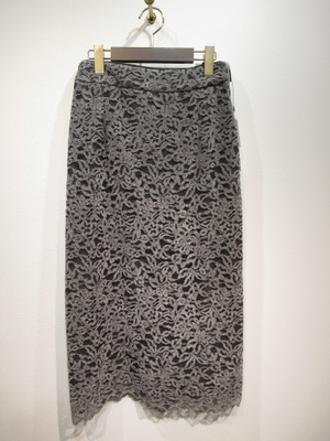レース地のタイトスカート(モール糸使用)裏地付き 後ろファスナー ウエスト脇の方にギャザーゴム入 後ろスリット入り
