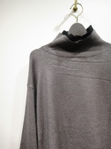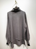 裾丈長めのタートルネックニット 袖は袖口ボリュームあり 襟ぐりと袖口は黒の配色2枚重ね 裾前後差あり 手洗い可能
