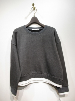 クルーネック ドロップショルダー 裾と袖口異素材(白生地)を合わせてます 手洗い可能