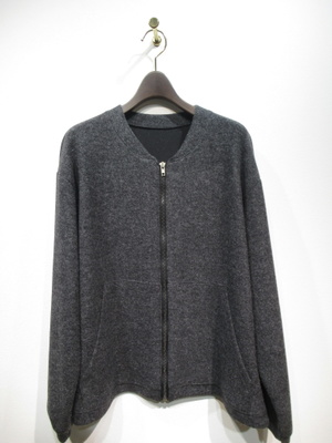 圧縮ウールのブルゾン、襟無し、前ファスナー