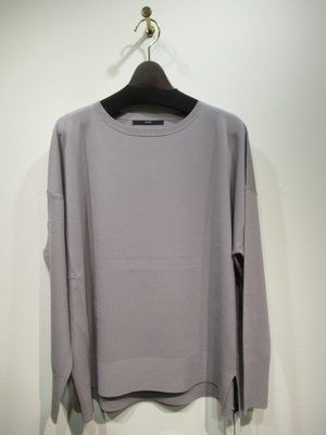 ※春物新作 ドロップショルダー、身幅広め、裾前後差あり(スリット入り)、襟ぐり・袖口・裾リブ、とろみのあるニット生地、手洗い可能