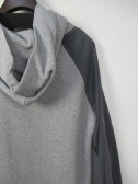 ラグラン袖 プルオーバーのパーカ 袖と身ごろは異素材 左袖中央のポケット 手洗いOK