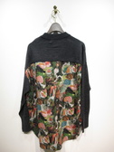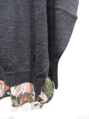 ざっくり緩めのニットと布帛のドッキング 後ろ身頃の布帛(リバティプリント)後ろ長め 脇スリット ネックはややハイネック