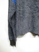シャギーニット 袖付けのところから脇にかけて異素材(ブルーのテープ) を挟んで脇はスリット