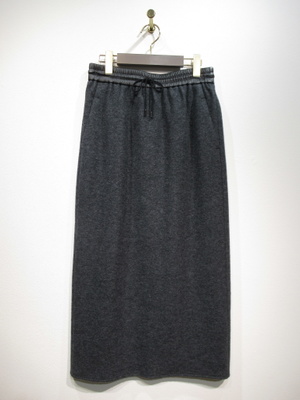 圧縮ウールのタイトスカート、ウェストは黒の合皮(ギャザーゴム+黒の紐調整あり)裏地付き、スリット29p、脇ポケット