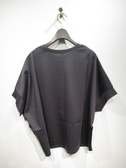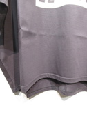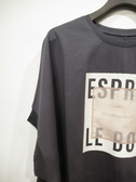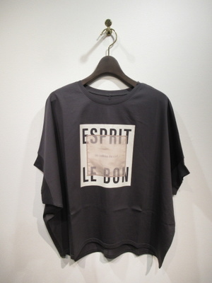 手洗い可能、フロントにスクエアのロゴ入りカットソー、プリントロゴの上にオーガンジーの生地を貼り付けている(ポリエステル素材)、白はライトグレー×ブルー・チャコールはオフホワイト×ピンクベージュ、半袖ドルマンスリーブ