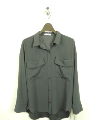 ビッグシルエットシャツ、胸元貼りポケット、前上がり