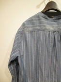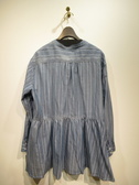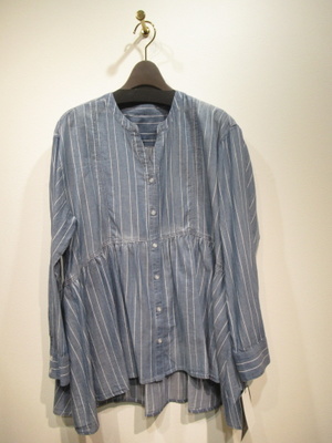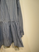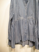 ※春物新作 ストライプ柄 中央から切り替えその下はギャザー寄せ フロントボタン 裾前上がり 袖カフス 手洗い可能