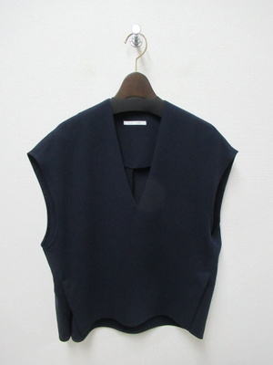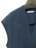 フレンチ袖のスクエアデザインベスト Vネック 裏地なし 裾前上がり 脇から裾にかけ斜めに縫い目(スリット入) 手洗い可能
