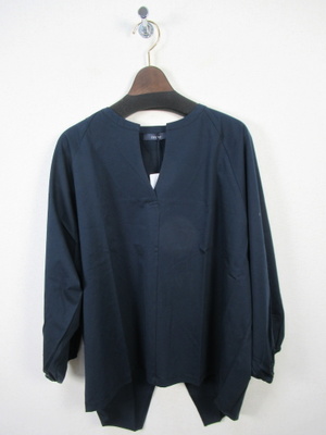 スキッパー ざっくり緩めのシルエット ラグラン袖の長袖 袖口ゴム 後ろ下がり 後ろ身頃に中央で切り替えその下は打ち合わせデザイン 手洗い可能