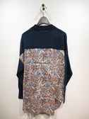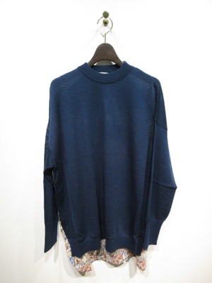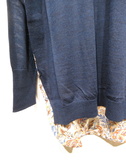 ざっくり緩めのニットと布帛のドッキング 後ろ身頃の布帛(リバティプリント)後ろ長め 脇スリット ネックはややハイネック