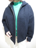 ドロップショルダーのざっくりデザインのブルゾン・コート フード襟 フロントファスナー(ゴールド)裏地無し 裾後ろはゴム入り ポケットあり 手洗い可能