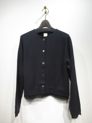 ※春物新作 クルーネック 裾と袖口チュール素材を重ねてます 前開き カーデ風のカットソー 手洗い可能