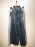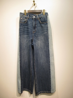 ※春物新作 脇は配色(明るめのブルー)のためやや立体的に見える、ワイドデニム、綿100%ストレッチなし、手洗い可能