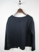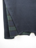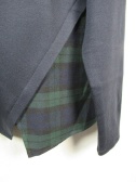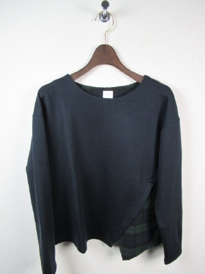 ややドロップショルダーで左部分にチェックの異素材、左脇部分から切り替えになっていて後ろ身ごろも少し別布が見えます