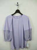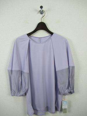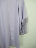 ラグラン袖(7分丈)フロントの袖切り替えのところタック入り 袖途中異素材切り替え(綿ポリのやや透け感のある生地) 後ろネックのところカギホック 脇スリット 手洗い可能