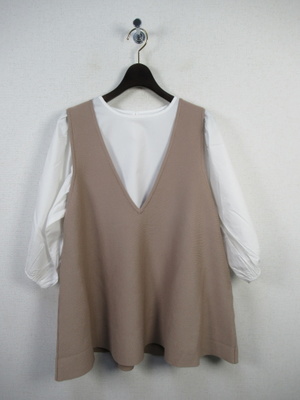インナーの白のブラウス(綿100%)とベストのセット ブラウスは7分袖 もちろん別々に着用も可能 どちらも手洗い可能 寸法はベストを採寸