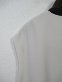 フレンチ袖のスクエアデザインベスト Vネック 裏地なし 裾前上がり 脇から裾にかけ斜めに縫い目(スリット入) 手洗い可能