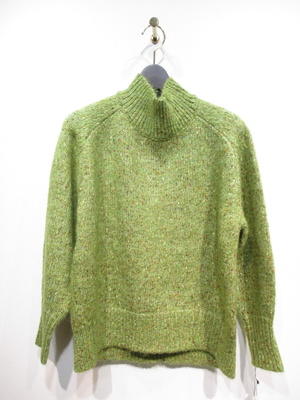 ミックスツイード編み ハイネック ラグラン袖 後ろ背の部分ライン 手洗い可能