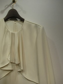 やや地厚なポリエステル生地 フロント2枚重ね リボン風のデザイン 後ろファスナー有り 袖口ギャザー(カフス)裾脇スリット(丸み有り)手洗い可能