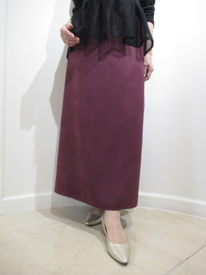 Aラインロングタイトスカート ウエスト後ろギャザーゴム リボン調整あり 裏地なし 両脇スリット(27cm)裏地なし 脇ポケット