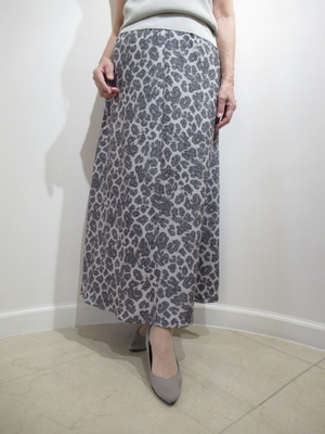アニマルプリント生地 4枚ハギのロングスカート インベルなしのウエストギャザーゴム 裏地付き 手洗い可能