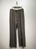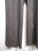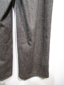 黒に近い焦げ茶系の生地、尾州ジャパンの素材、裏地付き、ウェストドロスト。脇ポケットあり