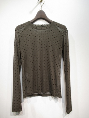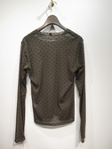 チュールレースのカットソー、丸首、長袖、ドット柄、手洗い可能