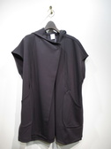 フレンチ袖 身幅広めのジレ フード襟 打ち合わせは襟元に近い方のホック(ダブル)裏地なし 脇スリット フロントにポケット 手洗い可能