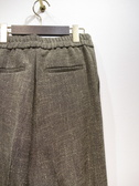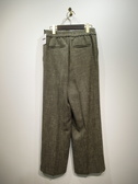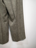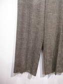 ID:11837のベストとセットになります、黒系のツィード(色的には全体にカーキっぽく見えます)、ソフトワイド、センタープレス入り、フロントファスナー、ウェスト後ろギャザーゴム、両脇ポケット、裏地なし、手洗い可能