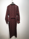 裏地なし 襟無し 長袖ワンピース プルオーバー 胸元空き有り(ゴールドのボタン)共生地のベルト ドロップショルダー 袖口カフス(ゴールドのボタン) 脇ポケット 手洗い可能