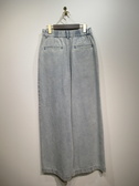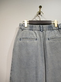 ストレッチなしのデニムです フロントのポケット下から2タック入ったややワイドのデニム 前ファスナーあり 後ろウエストギャザーゴム 手洗い可能 デザイン同じのコットンパンツあり ID:118392