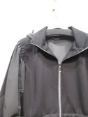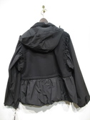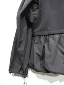フード襟のペプラムデザインブルゾン 身頃はカットソー生地 ペプラムとフード 袖はポリエステル生地 袖口はウエストなどドロスト フロントファスナー フードは取り外し可能