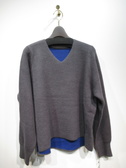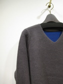 Vネックニット 表はチャコール 裏はブルーの配色 後ろ下がり