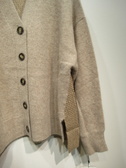 Vネックカーデ 前後ろで編地違い 脇スリット