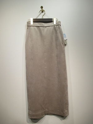 フェイクスエード生地 タイトロングスカート ウエスト後ろギャザーゴム 脇ポケット 裏地無し 後ろスリット(33cm)手洗い可能
