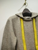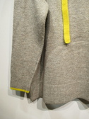 フード襟のニット 丈長 袖口とフードの紐が黄色 裾と袖口リブ 手洗い可能