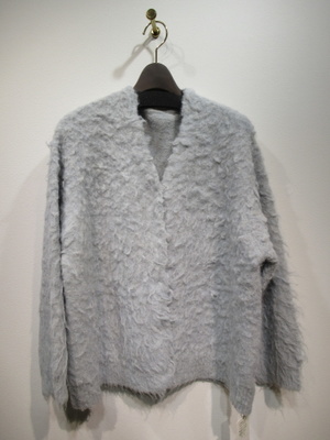 圧縮ウールにシャギーのような生地の表面 Vネックのカーデ(ホック) ドロップショルダーで少しざっくりデザイン 手洗い可能