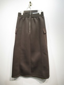 ソフト段ボール生地、カーゴタイプのAラインスカート、裏地なし、ウェストゴム、後ろシルバーのファスナー