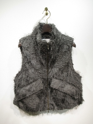 シャギーファーベスト シャギーとボアのドッキング 前ファスナー ポケット有り 裾ドロスト 手洗い可能