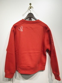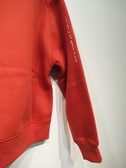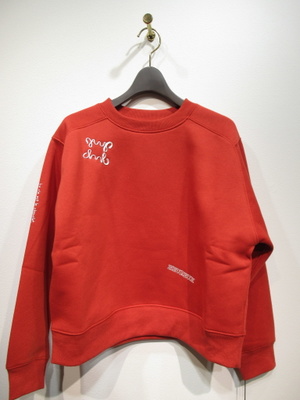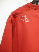 裏起毛 ドロップショルダー やや裾丈短めのトレーナータイプ 襟ぐり、袖口、裾はリブ 前身頃右胸に白色で刺繍 後ろ身頃左上にハートの刺繍 オレンジは白で 他2枚は赤 右袖と左前にペイントロゴ 手洗い可能