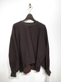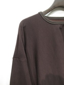 裏起毛、前後差かなり有ります、フロント裾はアーチ型、ドロップショルダー、袖の中心あたりに切り替えあり、ボリュームのある袖、襟ぐりと袖口はリブ、手洗い可能、ID:118506と同素材